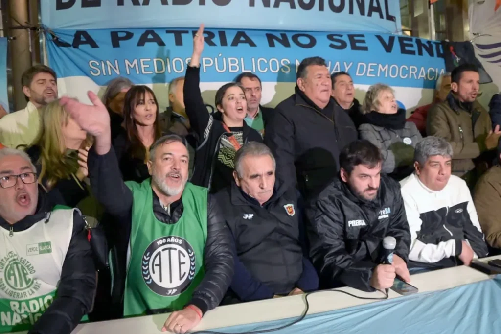En la conferencia, participaron figuras clave del movimiento sindical: Rodolfo Aguiar, Secretario General de ATE; Pablo Moyano, Secretario Adjunto del Sindicato de Camioneros y dirigente de la CGT; Juan Pablo Brey, Secretario General de Aeronavegantes; Juan Carlos Schmid, Secretario General de Dragado y Balizamiento y de la FeMPINRA; Carla Gaudensi de la Federación Argentina de Trabajadores de Prensa (FATPREN); Agustín Lecchi, del Sindicato de Prensa de Buenos Aires (SiPreBA), y dirigentes de la Asociación Argentina de Trabajadores de las Comunicaciones (AATRAC), que representa a empleados del Correo Argentino. También asistieron trabajadores de medios públicos como Radio Nacional, TV Pública y Télam, del Correo Argentino y de Aerolíneas Argentinas.
