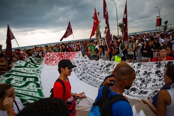 Esta marcha, convocada por la Unión de Jóvenes Comunistas, condena el genocidio que comete Israel contra la población civil palestina.