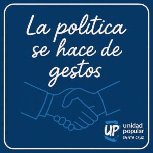 Desde Unidad Popular Santa Cruz apostamos a una provincia con justicia social, democracia real y participación popular. Apostamos a la unidad, pero no a cualquier precio. La unidad sin justicia es sometimiento. El compromiso sin hechos es mentira.