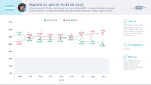 Redacción Raíces Digital | De acuerdo con el relevamiento mensual del Centro Estratégico Latinoamericano de Geopolítica (CELAG), la imagen positiva del presidente argentino descendió de 53,2% en enero a 40% en septiembre, mientras que la negativa aumentó de 43,3% a 55,7%.