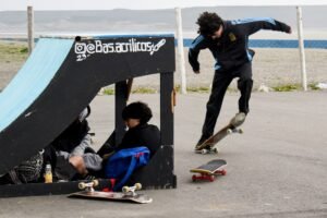 Este viernes, la Municipalidad de Río Gallegos recibió con entusiasmo la llegada del destacado skater argentino Giani De Gennaro, quien inició una clínica de skate para jóvenes, marcando el comienzo de una serie de actividades pensadas para fomentar este deporte entre los habitantes de la ciudad. Con el apoyo de la Municipalidad, esta iniciativa busca ofrecer a los jóvenes no solo la oportunidad de aprender técnicas de skate, sino también una experiencia creativa y práctica en el armado de sus propias tablas, que De Gennaro llama “palitos”.